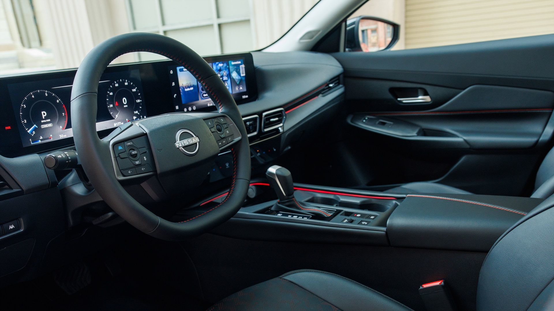 The SV adds wireless Apple CarPlay and Android Auto, automatic climate control, Nissan Intelligent Key with push-button start, and a 12.3-inch enhanced driver information display. Upgraded cloth seats with improved comfort and a drive mode selector with Sport mode round out the enhancements. The SV Premium package adds a power moonroof, wireless charging, ambient lighting, and approach unlock/walk-away lock functionality.