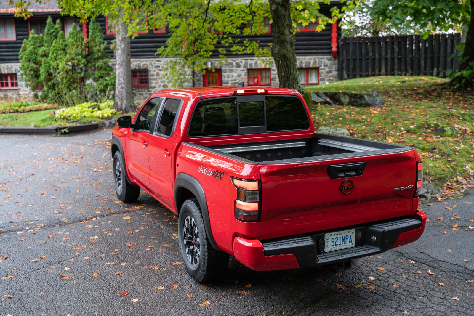 Alberta's best fishing often requires leaving the pavement behind. The Frontier PRO-4X is built to handle trails that lead to secluded lakes and streams. Its part-time 4WD system and electronic locking rear differential provide traction on loose gravel, mud, and uneven terrain. The 240 mm (9.5 inches) of ground clearance and 32.3-degree approach angle help the truck clear obstacles without scraping the underbody.